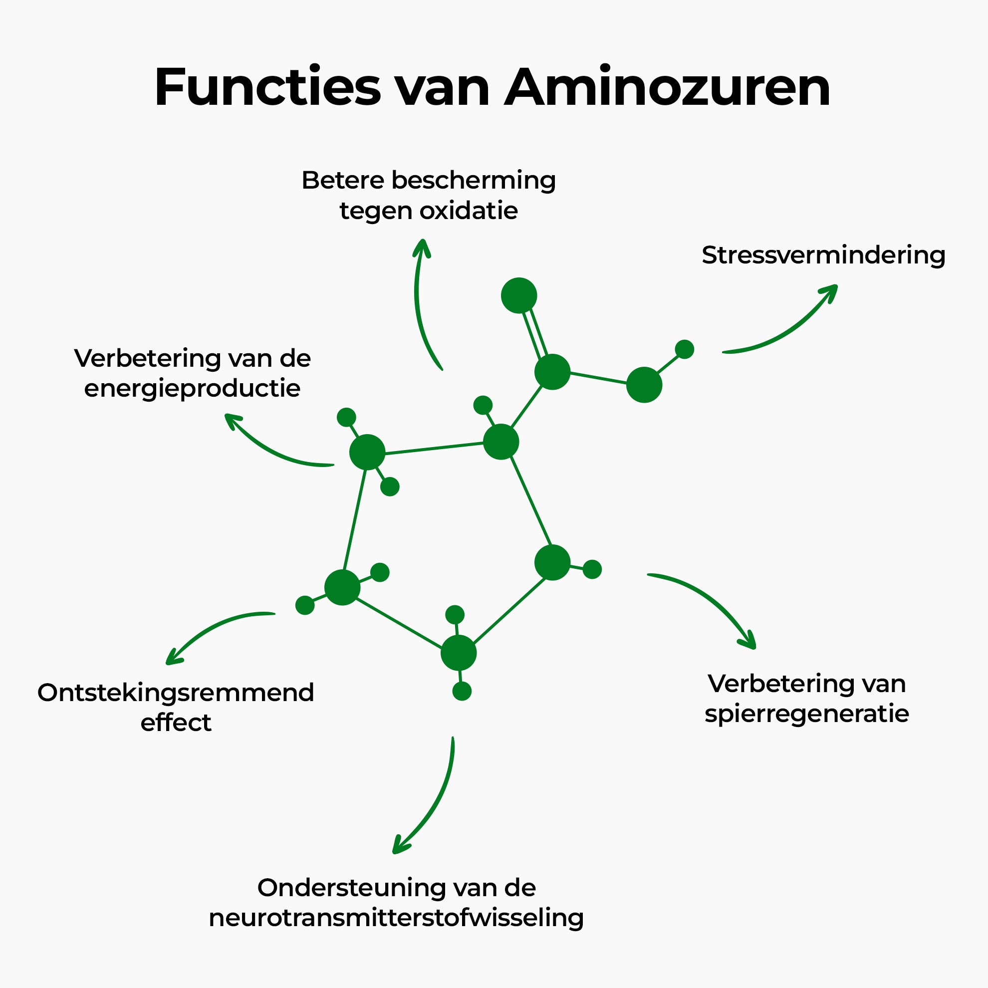Immers, spieren, neurotransmitters, enzymen en immuuncellen bestaan grotendeels uit aminozuren – de fundamentele bouwstenen van het lichaam.
